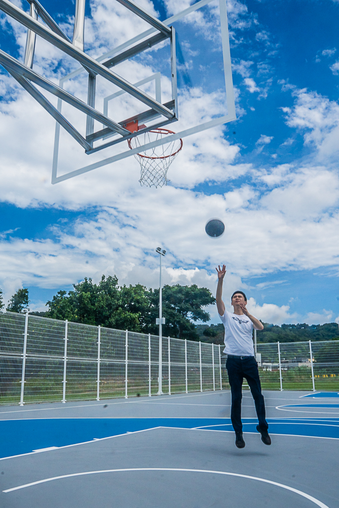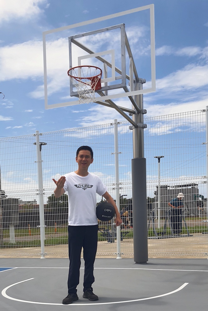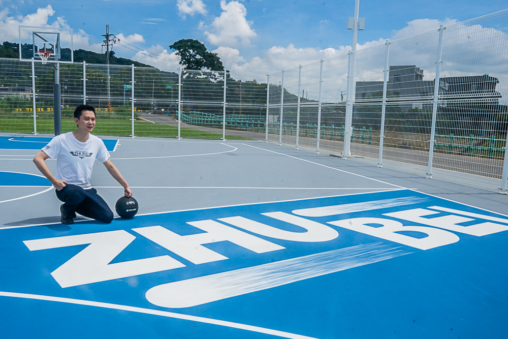 鄭朝方接著指出,星空籃球場延續星際設計概念,以藍灰色地坪結合「ZHUBEI」LOGO,打造專屬竹北市的籃球場風格。值得一提的是,地坪上繪有象徵慧星的線條,呼應「星空」主題,讓球友在群星相伴下揮灑汗水、暢快恣意,打球也能是一種享受。
