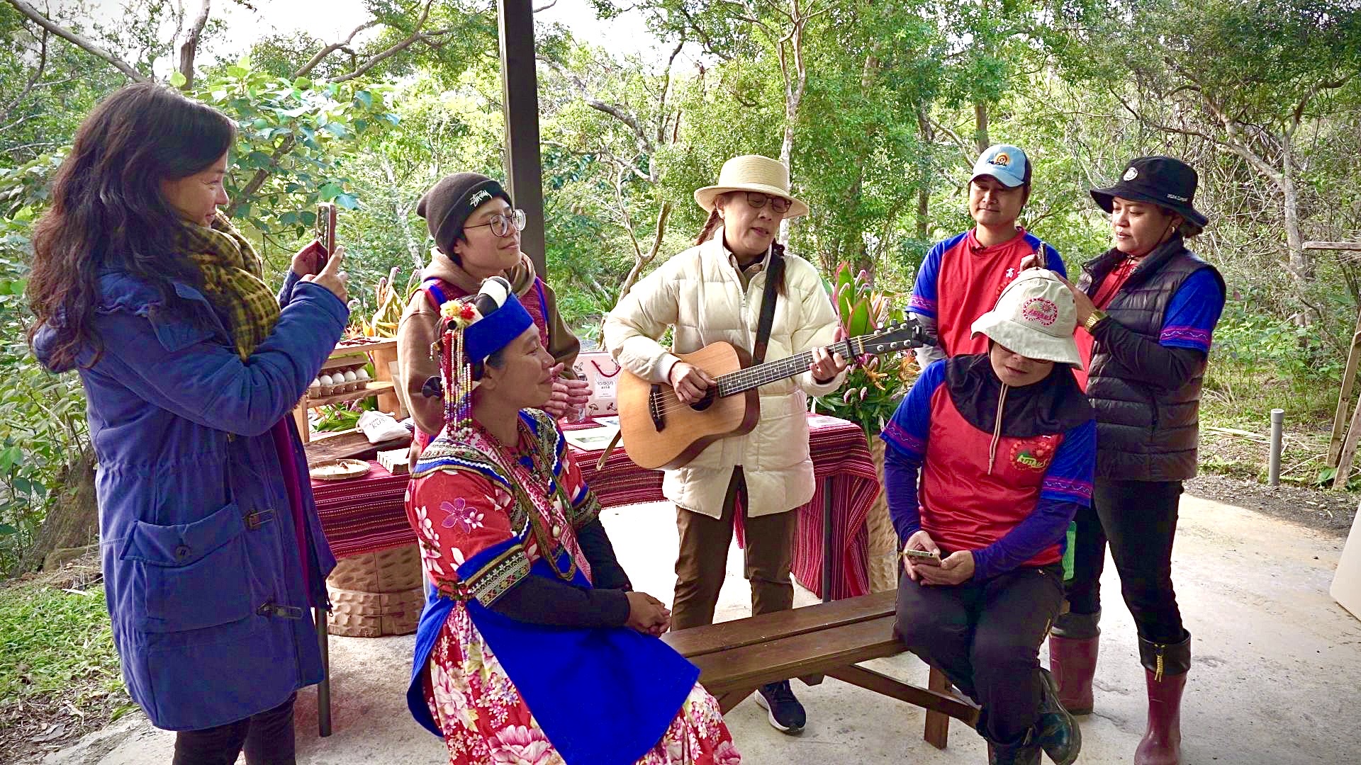 節目主持人/歌手曾淑勤與當地部落一起錄影歡唱(照片提供:承新傳播)