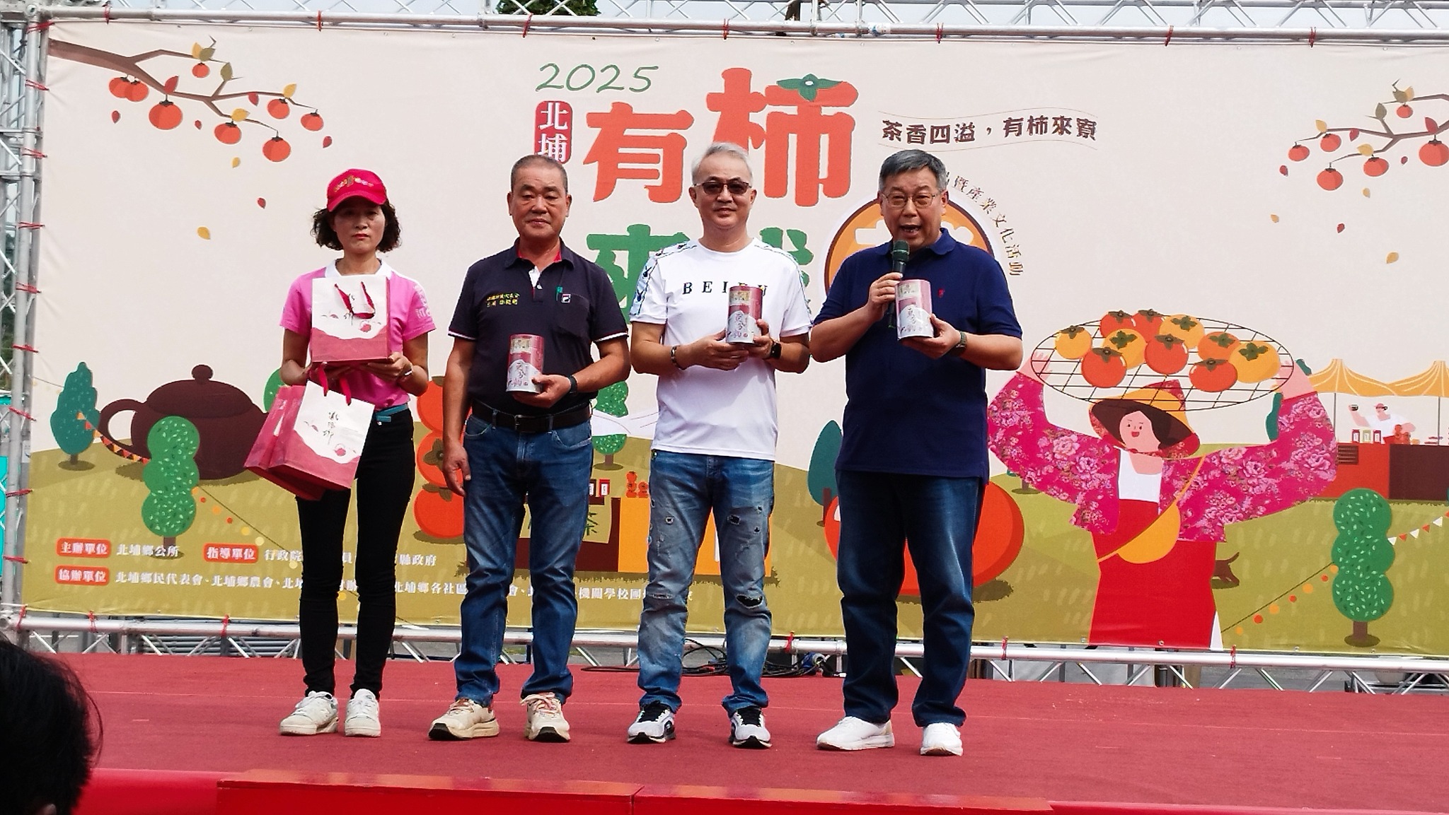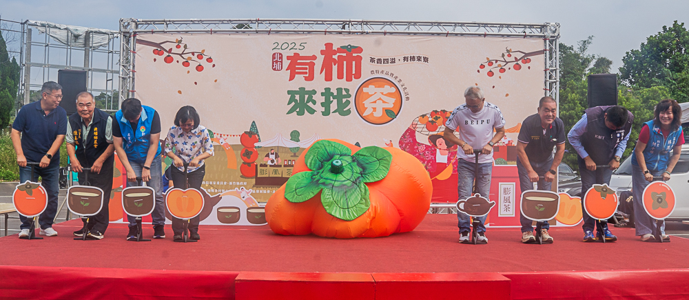 【記者 高飛/新竹報導】2025 北埔有柿來找茶農特產品暨產業文化活動8日於北埔鄉俥亭停車場盛大登場;今年以「茶香四溢,有柿來寮」為主題,串聯在地石柿與膨風茶兩大特色農產,從茶席體驗、DIY 手作、市集展售到客家表演與孩童競賽,吸引上千名民眾共襄盛舉,為秋日山城注入滿滿活力與香氣。