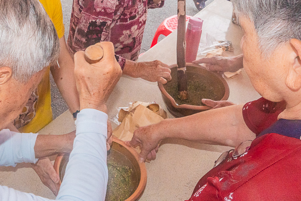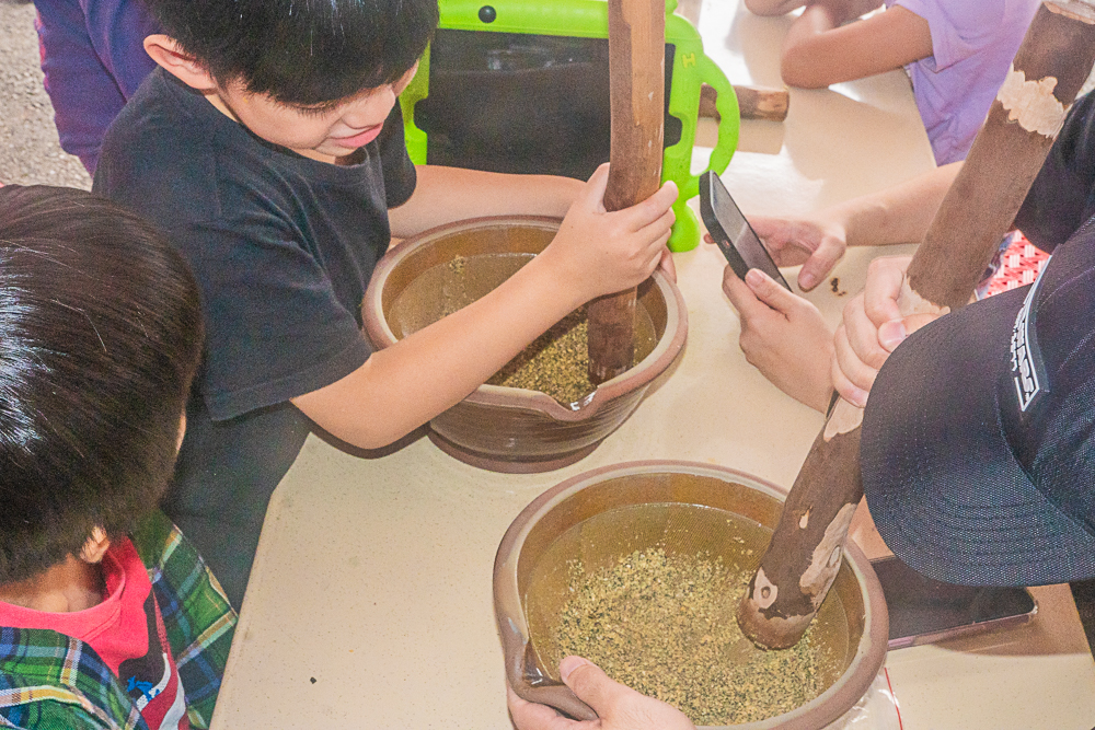 最受矚目的開幕儀式以「百人擂茶」拉開序幕。由社區成員與民眾共同參與,依古法「擂、磨、沖」將花生、芝麻與茶葉搗出層次香氣,茶湯入口溫潤回甘;百人同擂的壯觀畫面在現場掀起陣陣掌聲,象徵北埔「一起做、一同 享」的凝聚精神,也把「以茶會友、共享豐收」的祝福送給每位到場的朋友。
