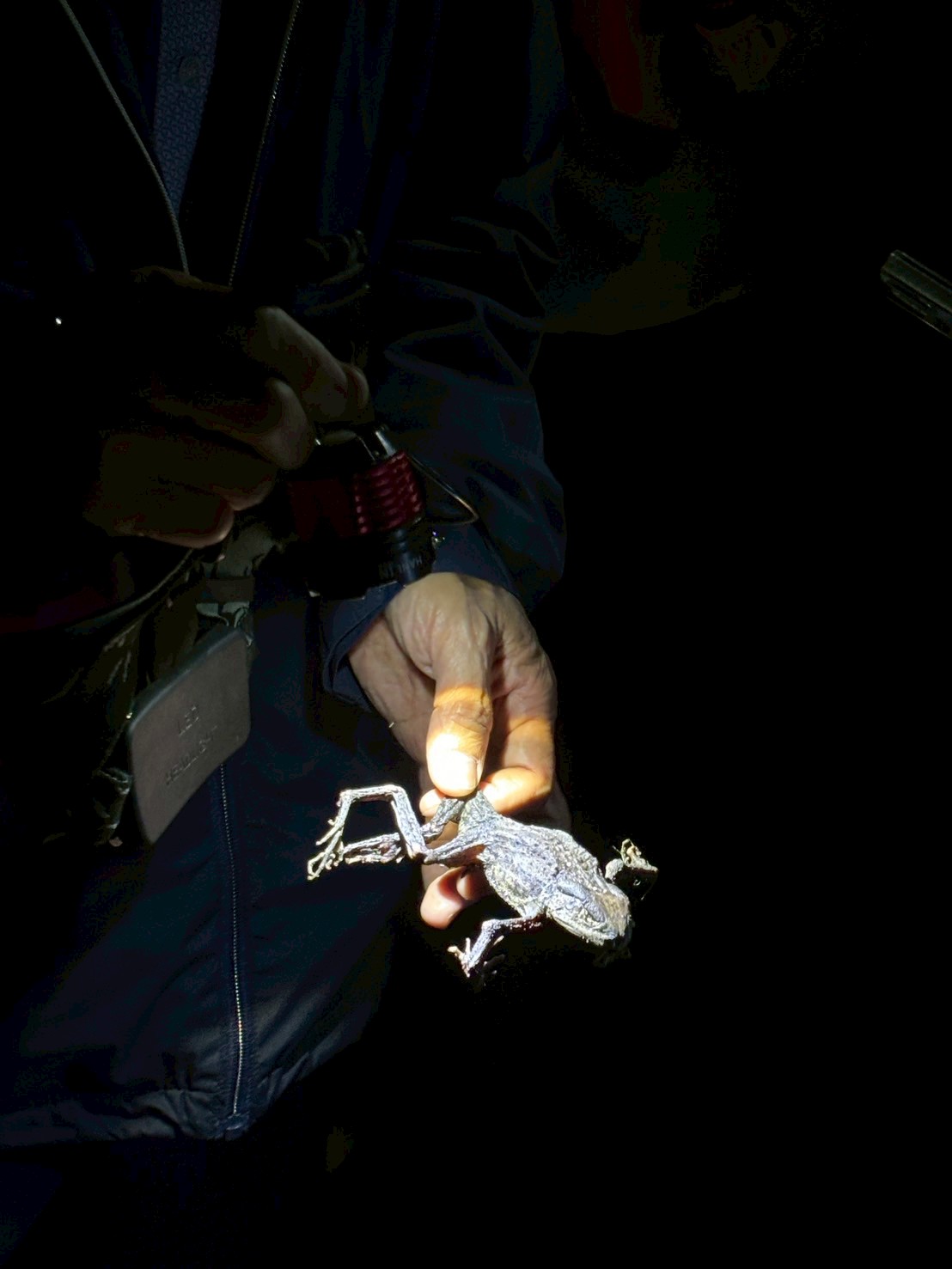 夜幕降臨後,團隊走入馬太鞍濕地展開夜間生態探險。導覽員帶著大家在步道間尋找螢火蟲與各類夜行生物,腳步不自覺放輕、說話聲也柔了下來,讓人更能專注感受濕地在夜晚的細微律動。白日看似寧靜的馬太鞍,在夜裡其實藏著另一種熱鬧,以獨特的生態生命力迎接每位到訪者。