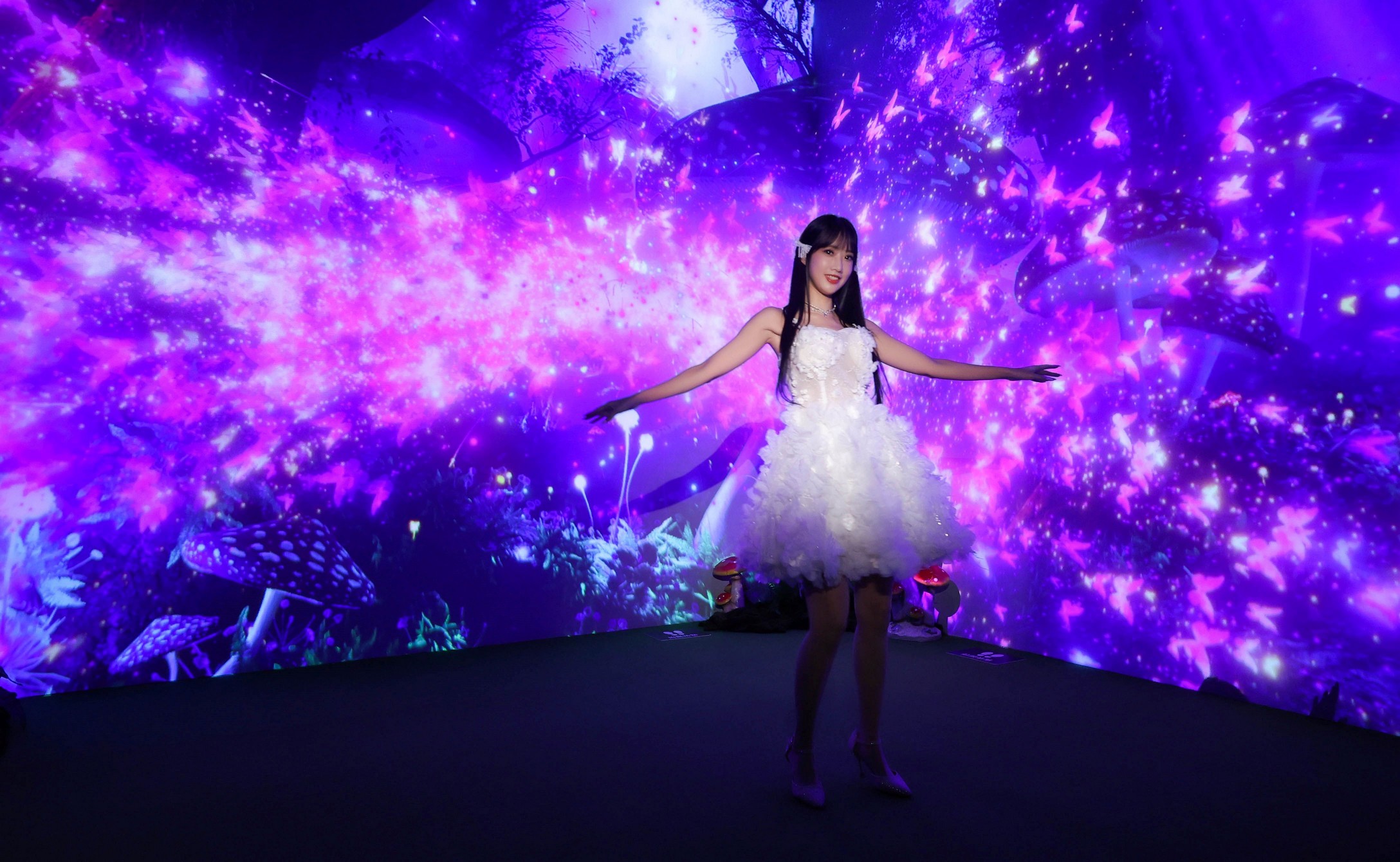 而本次光影互動展不僅重新詮童話故事,更以全新原創IP「勇敢愛麗絲」為主角,象徵夢想、勇氣與環保意識的覺醒,展現台灣AI沉浸式內容產業的國際實力,展覽佔地橫跨微風廣場8、9樓,規劃十二大主題區域,包括「夢境入口」、「泡泡之境」、「白兔之家」、「紅心宮殿」、「垃圾龍之戰」等,打造科技互動實境,其中最受矚目的角色「垃圾龍」,觀眾可透過AI互動清除龍身上的垃圾,重現光芒。全展空間融合光影科技與三款香氛主調清透花果香、紫羅蘭粉香與溫潤木質香,營造出彷如夢境般的五感沉浸體驗。