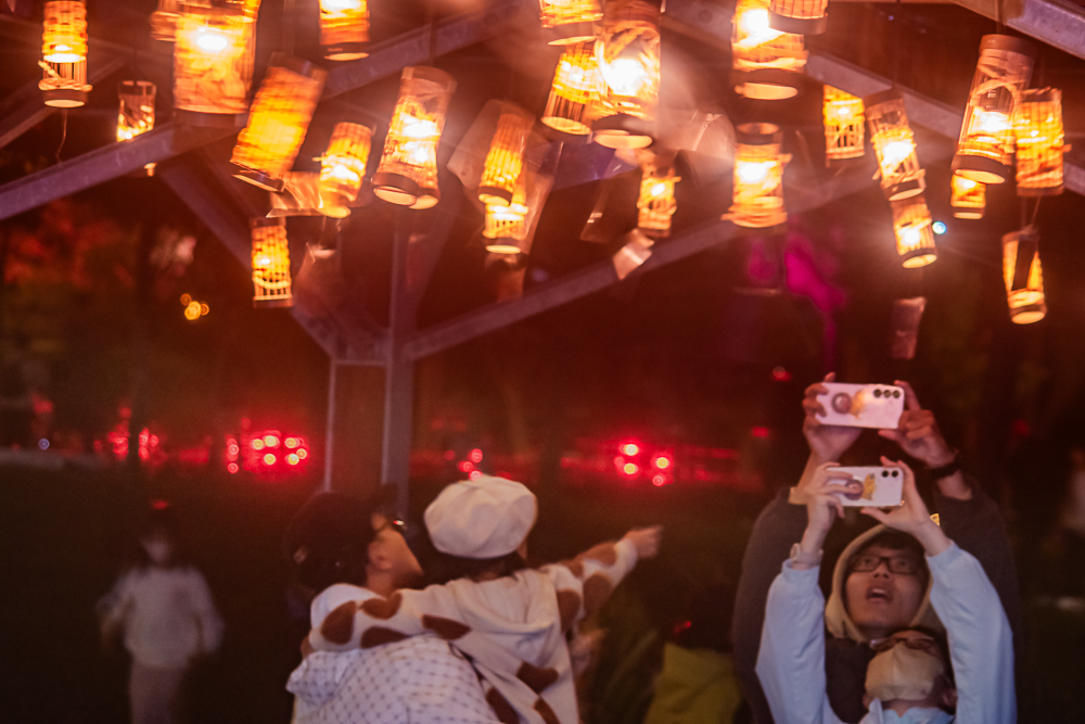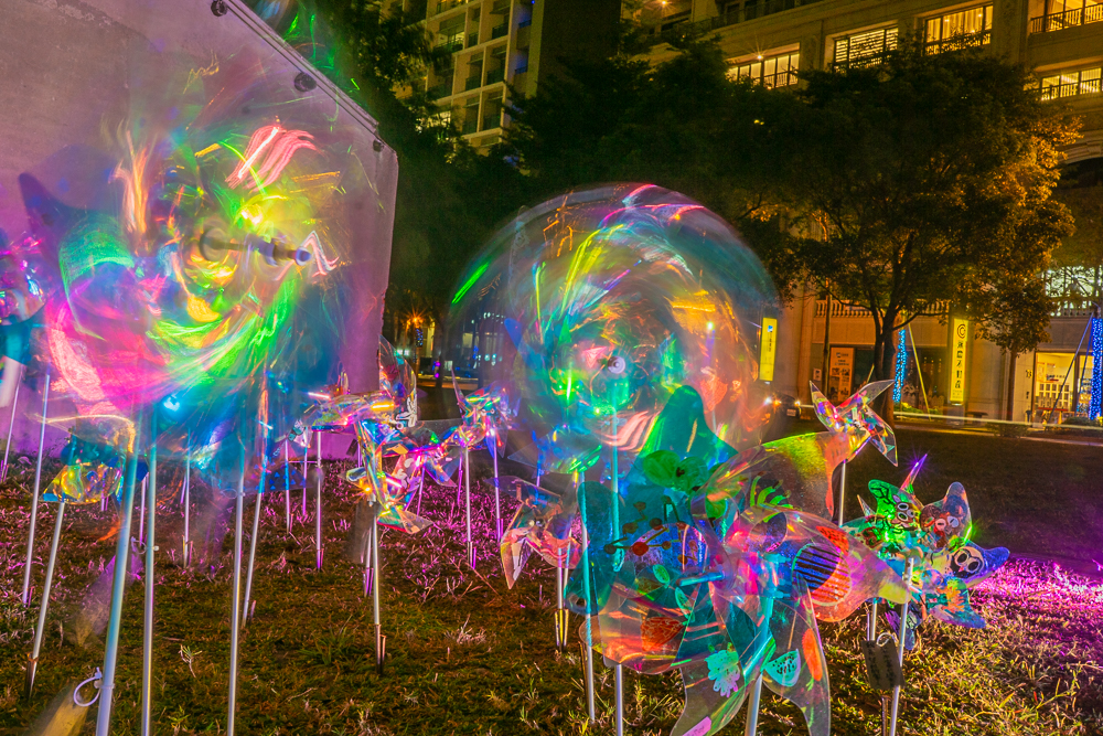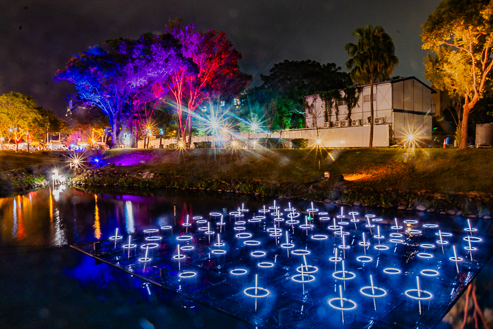 UA Studio與學童共創的《亮晶晶小怪獸》則將孩子的想像化為可愛星體,在水岸形成最具童趣的光之宇宙。