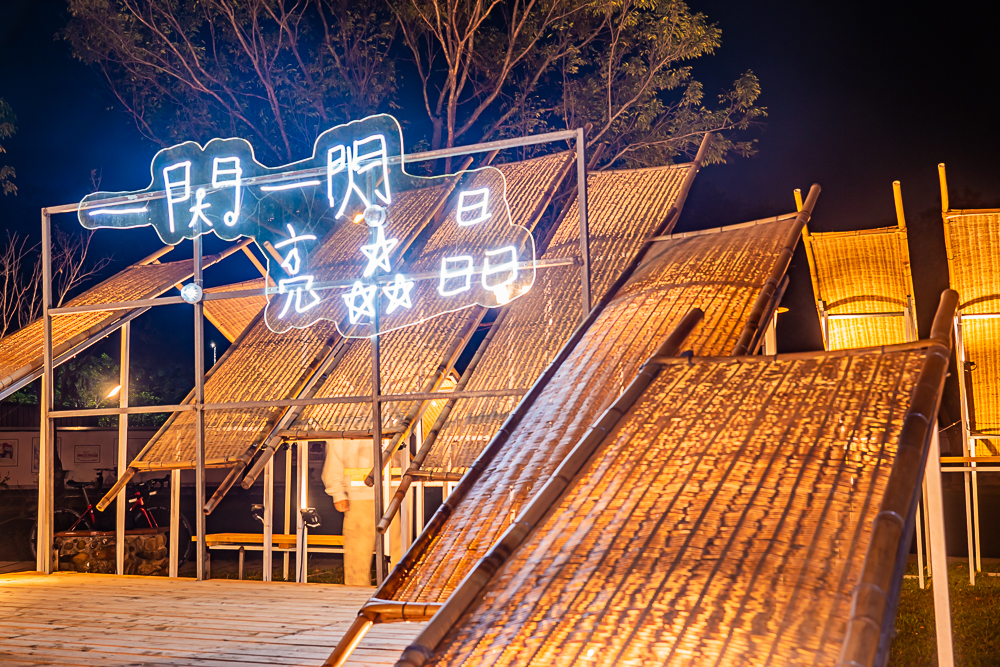 李謙宏與李城誌《逐光》以北埔七十年資歷竹編老師傅手作結構為基底,結合現代光影藝術成為「逐光」舞台,象徵「過去的光,在現在閃閃發亮」