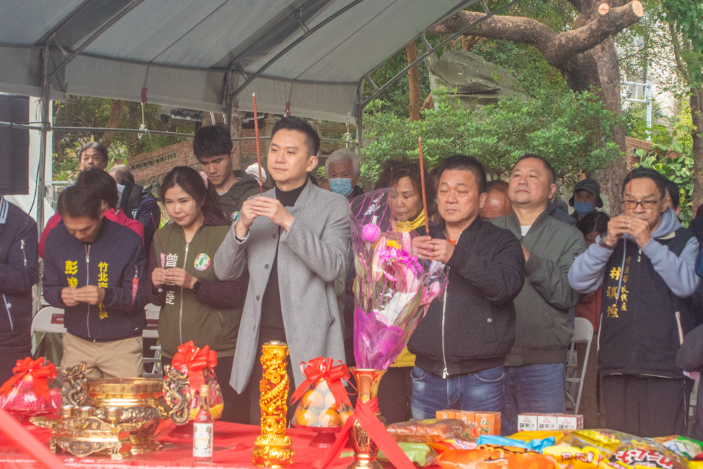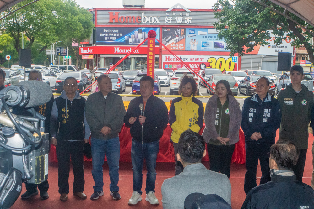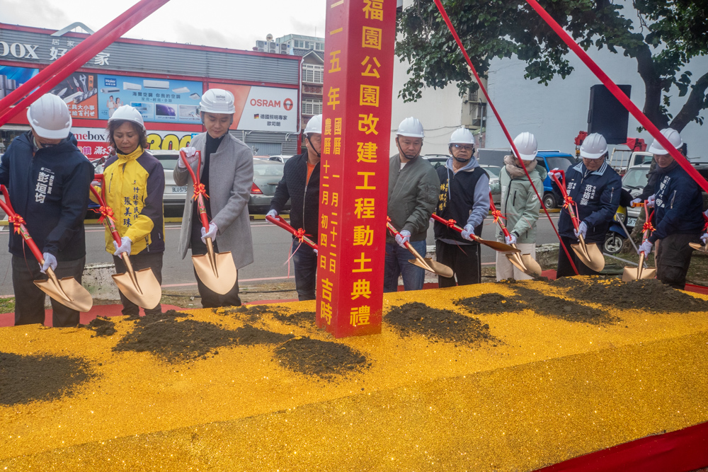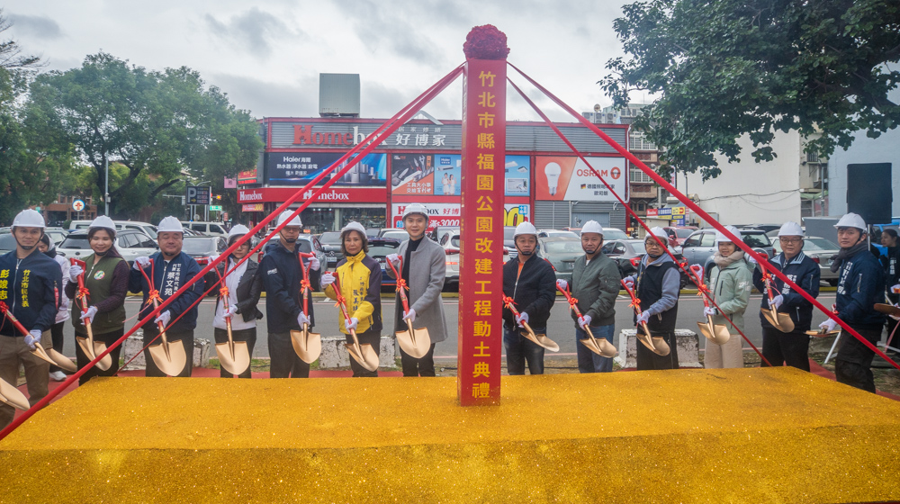 【記者高飛。語芸/新竹報導】竹北市公所於22日為緊鄰國道1號竹北交流道旁素有新竹縣門面之稱的「縣福園公園」舉行動土典禮,預計將投入2,798萬元進行全面翻新。竹北市長鄭朝方、竹北市民代表會主席林啟賢、副主席葉信輝、多位市民代表,以及多位里長等社區貴賓受邀出席見證公園新生。