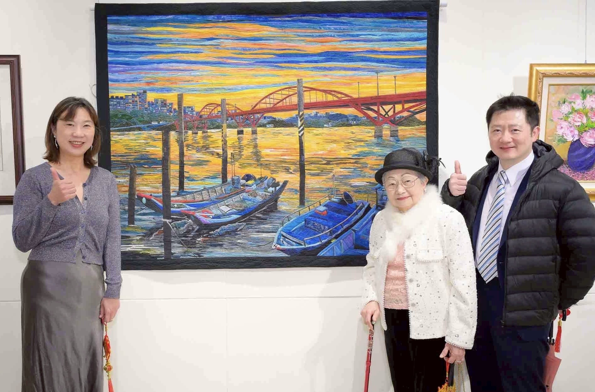 殷麗慧表示,創作過程中最具挑戰的是如何透過布料質地與色階變化,表現水面波動與建築反射的細緻層次。她希望作品不僅展現技術,更能傳達「色彩使地方甦醒」的精神。