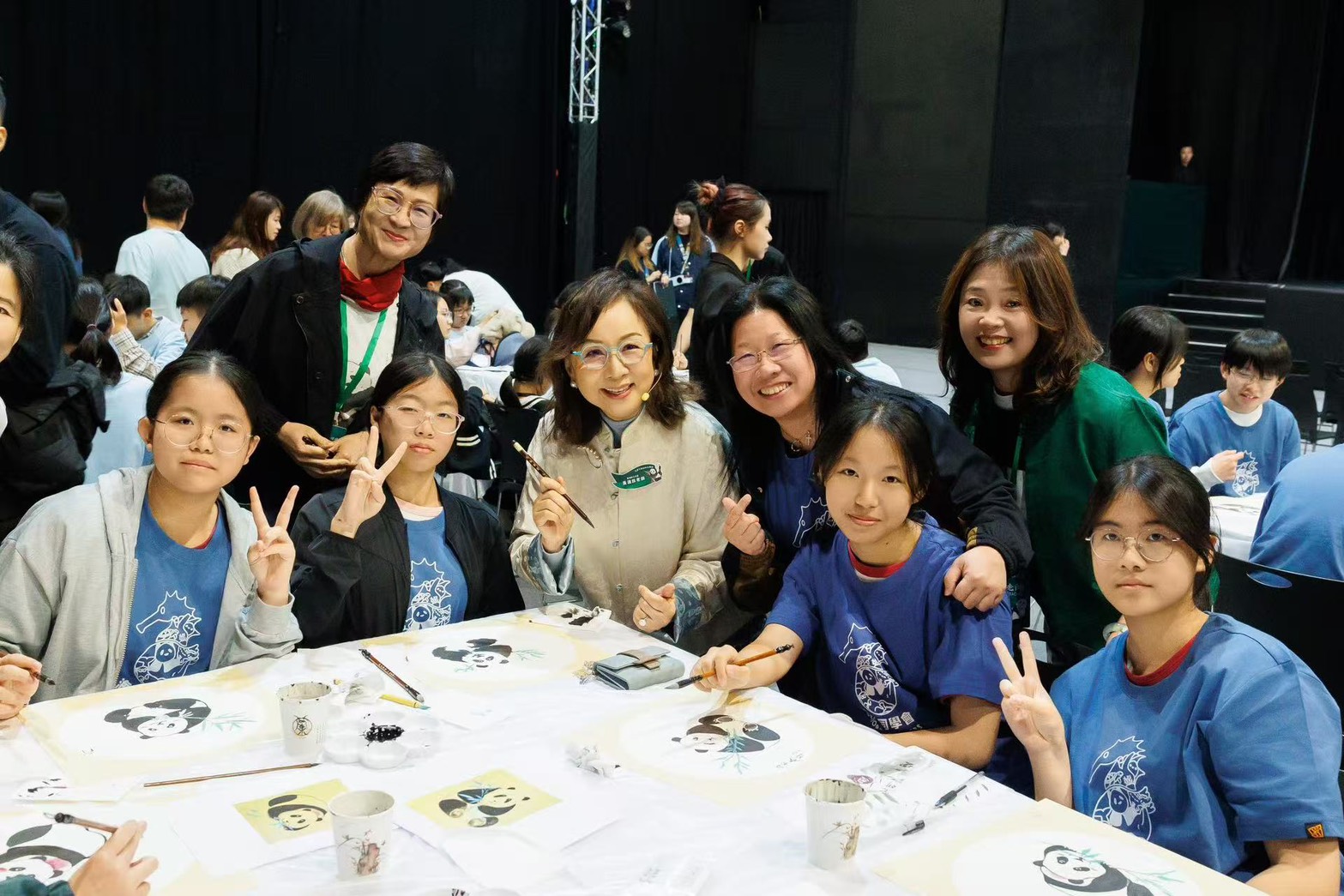 活動現場,黃湘詅亦與青少年學員共同完成 三幅大型大熊貓水墨畫作品,描繪「加加」與「得得」的可愛姿態,這些作品亦將於四月展覽中展出,象徵藝術教育與保育精神的延續。