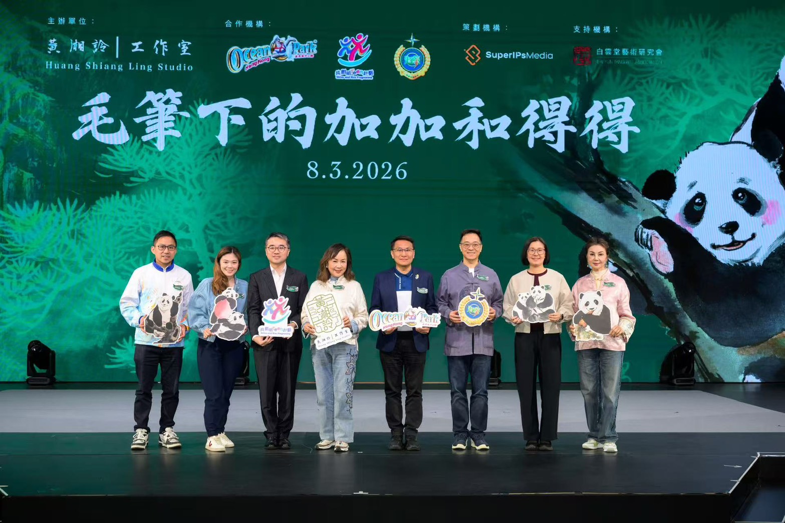 海洋公園與黃湘詅特別策劃水墨藝術工作坊《毛筆下的加加和得得》,工作坊於 2026 年 3 月 8 日在海洋公園舉行,邀請了逾百名背景多元的學生、青少年,包括「共創明『Teen』計劃」、「懲教先鋒領袖」及海洋公園「海馬同學會」成員參與。(照片提供白雲堂藝術硏究會)