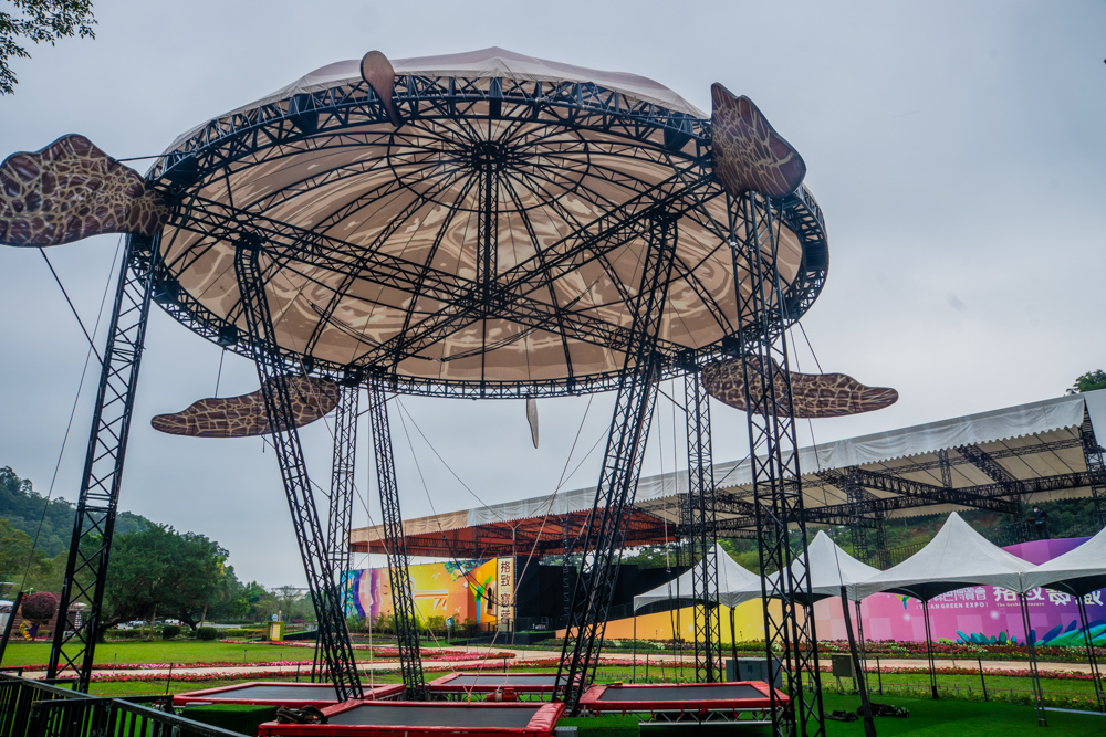 今年綠博以「格致寶藏」為主題,強調在氣候失序的時代,透過探究萬物真理來修復大地。園區內九萬株四季海棠、情人菊、鼠尾草等花卉已陸續綻放,將武荖坑妝點成一座粉紅與鮮紅交織的大花園。此外,18 個永續展區與 19 項趣味體能遊具(如海龜彈跳、人體陀螺儀)更是今年必玩的動靜態亮點。
