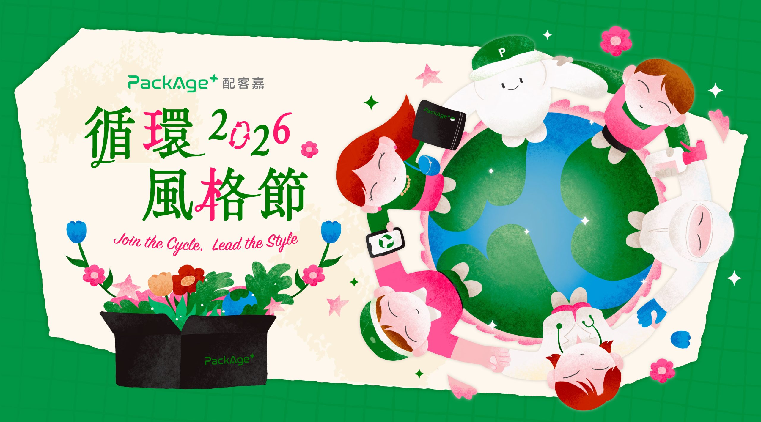 一年一度世界地球月 (Earth Month) 正式展開,隨著 4 月 22 日世界地球日 (Earth Day) 將至,各界永續行動陸續升溫。環保科技社會企業配客嘉 PackAge+ 發起「2026 循環風格節」,號召近 30 家企業品牌響應,打造年度規模最大的綠色消費聯合行動!活動期間,消費者只要選用循環包裝下單並完成歸還,即可參與抽獎,最大獎為萬元機票,更有上百件嚴選品牌好禮。透過將回饋機制導入既有消費流程,降低永續行動門檻,讓環保選擇自然融入生活,擴大循環經濟影響力。