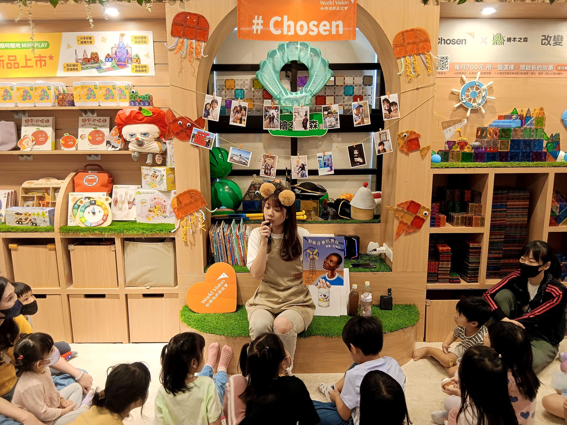 「威廉一直學習,所以很有創意,我也要努力學習,變得像他一樣厲害!」適逢兒童節,台灣世界展望會攜手繪本之森於四月3-12日為3-7歲兒童舉辦《馭風逐夢的男孩》繪本共讀活動,共60組小朋友與家長跟著故事主角、少年威廉·坎寬巴來到非洲馬拉威,看見兒童因乾旱而缺水、輟學的遭遇,更從主角自學打造風車發電、引水灌溉的精神中,學習在逆境中選擇行動、永不放棄,就能找到改變的希望。現場家長有感於發展中國家孩童資源匱乏、缺乏選擇機會,帶著孩子加入展望會「Chosen兒童資助計畫」,不僅陪伴像威廉這樣的孩子改善生活環境,更把選擇資助人的權利送給他們,讓受助童藉由照片挑選資助人,使「愛與選擇」成為一堂最有意義的親子成長課。