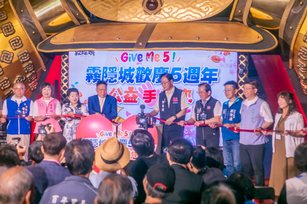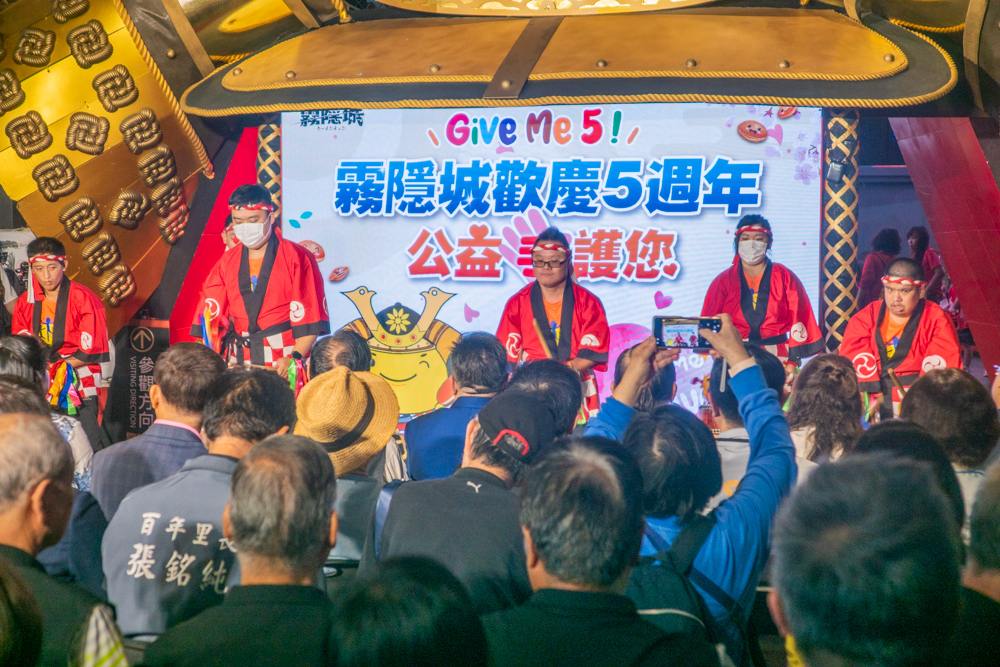 活動由桃園美好庇護工場庇護員工組成的「美好太鼓團」熱力開場,磅礡鼓聲象徵勇氣與希望,呼應「Give Me Five」主題。現場亦邀請桃園市安置機構孩童一同參與公益日活動,讓孩子們在溫馨氛圍中感受社會的善意與鼓勵。同時,陳世洋城主與張善政董事長於現場還親自發放福袋予桃園安置孩童,安置孩童亦親手獻上感謝卡,表達真摯心意。今年福袋內容除了有手信霧隱城的多項好禮,更結合龍潭的名人堂花園大飯店贊助的禮券和多項用品等,將隨機放入福袋中,為活動增添驚喜與歡樂。