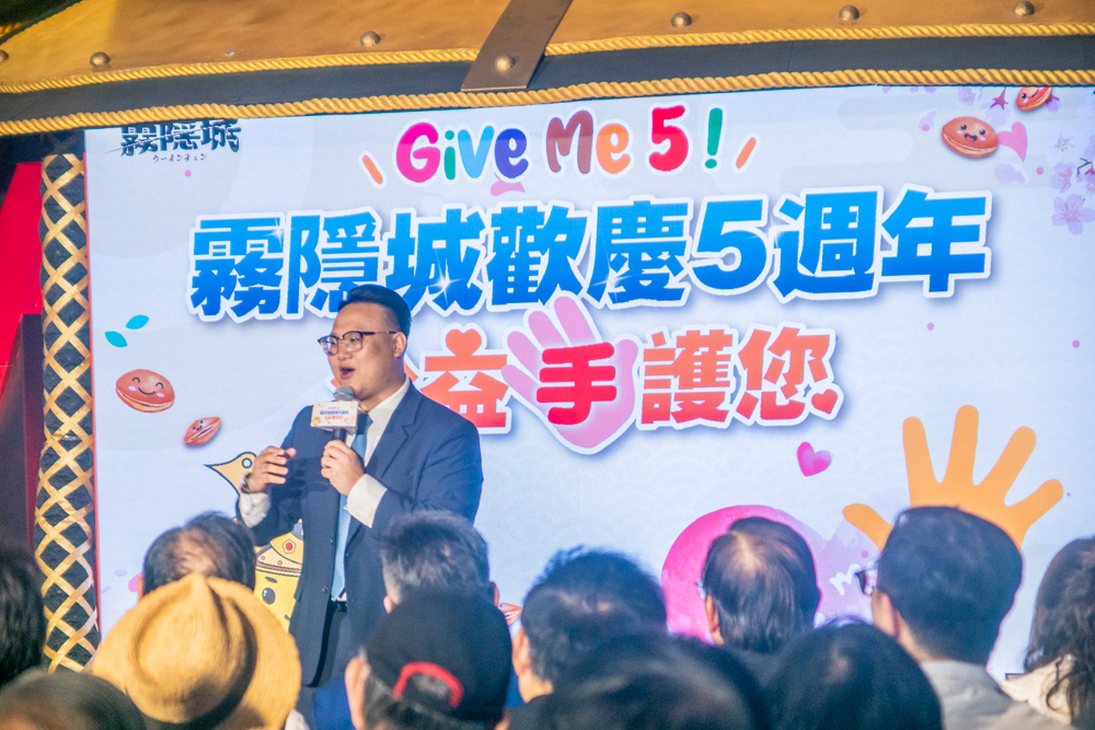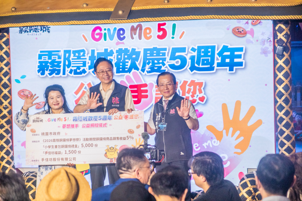 手信霧隱城二代城主陳麒文 表示,疫情期間觀光產業備受衝擊,所幸在各界支持下,仍能堅守不裁員、不放棄的信念,咬牙挺過艱難時刻。心中始終懷抱感謝,也更加堅定回饋社會的初衷。五週年不僅是品牌的重要里程碑,更是深化企業社會責任的全新起點。未來將持續結合觀光與公益,關懷弱勢孩童成長,陪伴勇敢追夢。同時也邀請全國親子家庭於即日起至5月31日前,來到手信霧隱城參與「2026霧隱銅鑼燒夢想祭」活動,不僅有機會抽中PS5、AirPods4、手信坊商品抵用券外,還能在體驗手作銅鑼煩的同時,一同響應「Give Me Five!」公益行携手成為支持弱勢家庭與孩童築夢的重要力量。